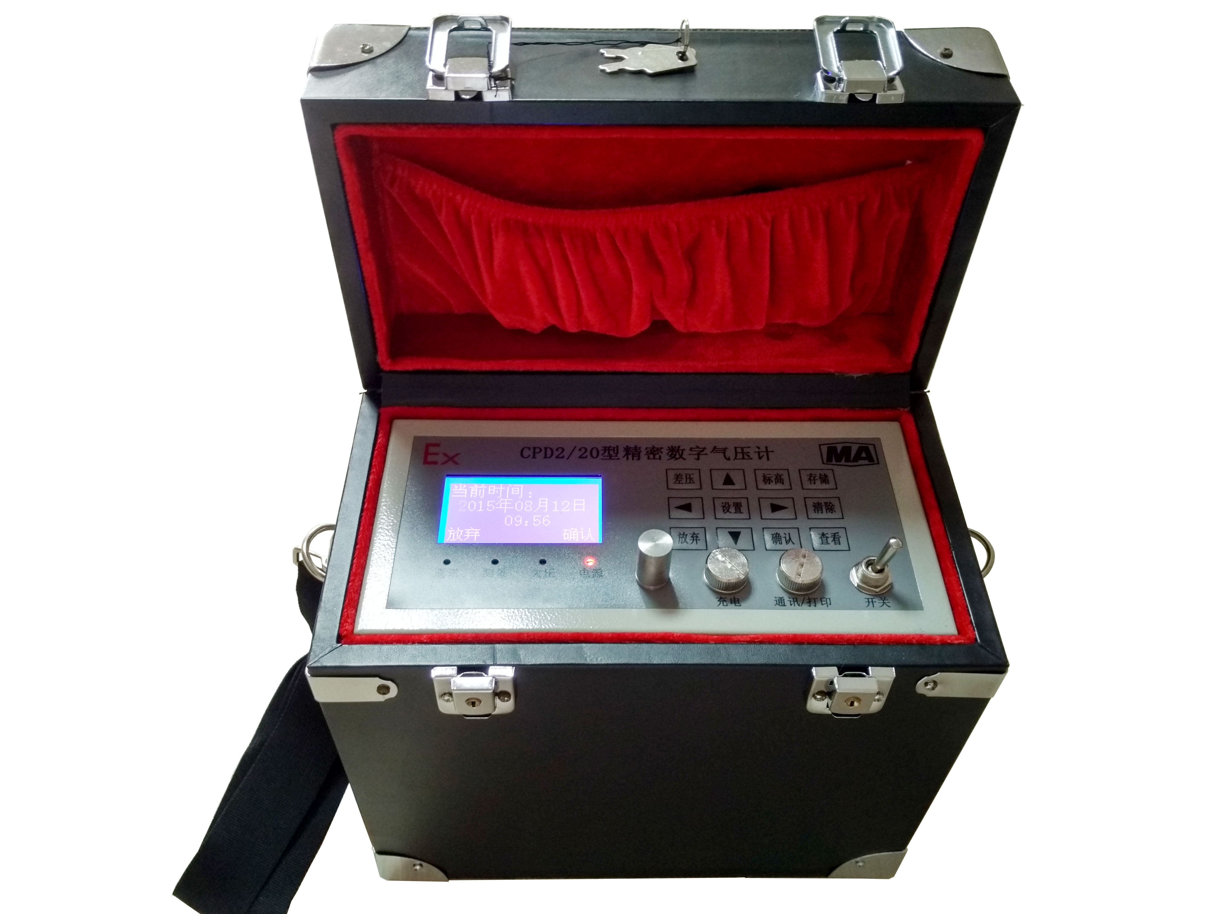 CPD2/20型精密数字气压计是一种便携式精密数字气压计。本气压计既可测量现场的气压(分辨率为0.01hPa),也可测量现场各点的相对气压差(分辨率为1Pa)。本气压计有可靠的耐振性,在携带过程中的正常冲击、振动带来的误差可忽略不计。本气压计可测量气温,消除了气温变化带来的漂移。本气压计采用液晶显示测量数据和测量时间,并可存储100组测试数据,气压计配备打印机,用户可在地面将测量的数据打印出来。气压计内部可充式电池可供气压计连续工作24小时。本气压计重量轻、便于携带,是一台理想的测试气压计。