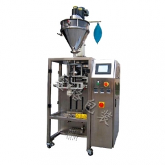 制袋系统采用步进电机细分技术,控制器汉字显示,热封器四路控制温度,可靠的光电检测系统,自动打印批号或生产日期,包装成品上切易撕口,计量螺杆由步进电机驱动可获得极高的重复精度,生产材料全部选用不锈钢制成,与物料接触部位采用的是316不锈钢,此包装机完全符合医药GMP要求。