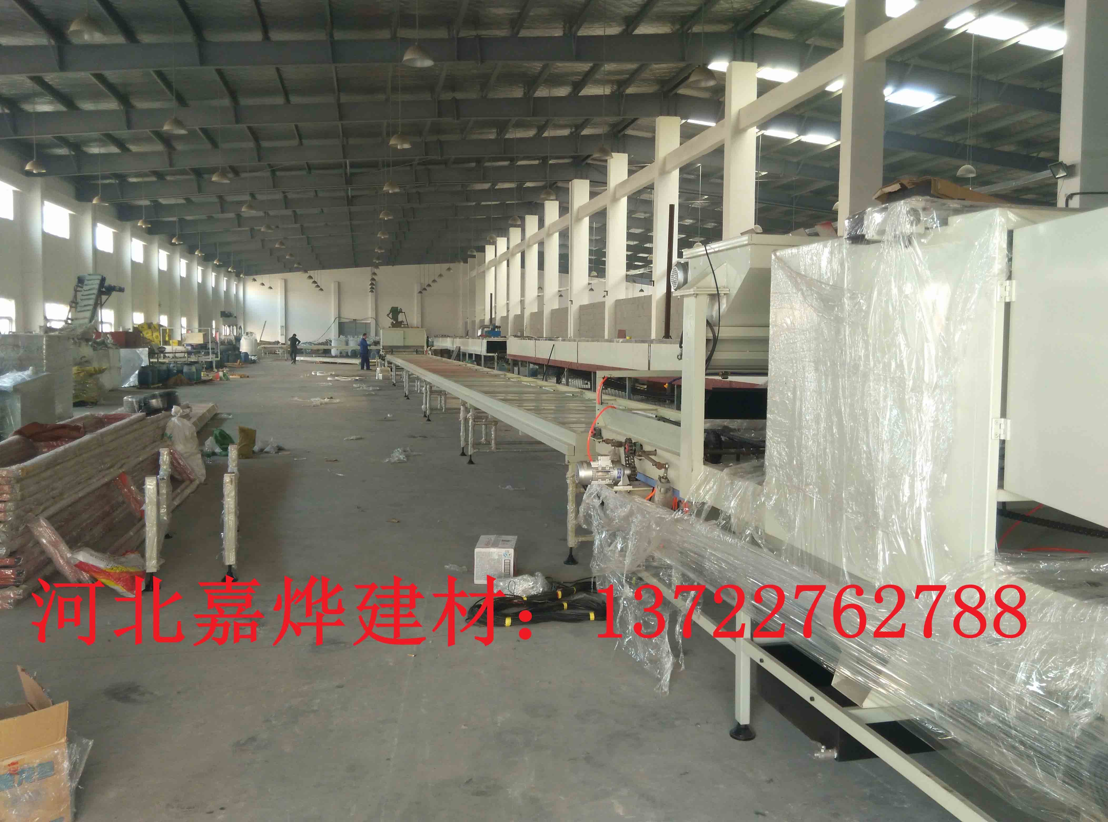 所述撒布机构具有使砂石分布均匀的布砂机构,结合翻转机构的作用,使砂石分布更均匀。该彩石金属瓦生产设备结构合理、涂胶和撒砂分布均匀、操作人员劳动强度低,有利于提高产品质量和降低生产成本。彩钢瓦机成型机广泛应用于工业民用建筑,如厂房、仓库、飞机库、体育馆、展览馆、影剧院等房面和墙体。建筑家电和交通运输等行业,对于建筑业主要用于钢结构厂房、机场、库房和冷冻等工业及商业建筑的屋顶墙面和门等,民用建筑采用彩石钢瓦的较少。