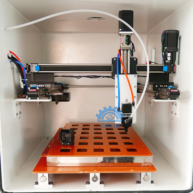 1.配备有机械手,可进行任意点,线,面,圆弧等不规则曲线连续点胶功能;工作行程:X轴600 mm Y轴600mm x Z轴300mm;