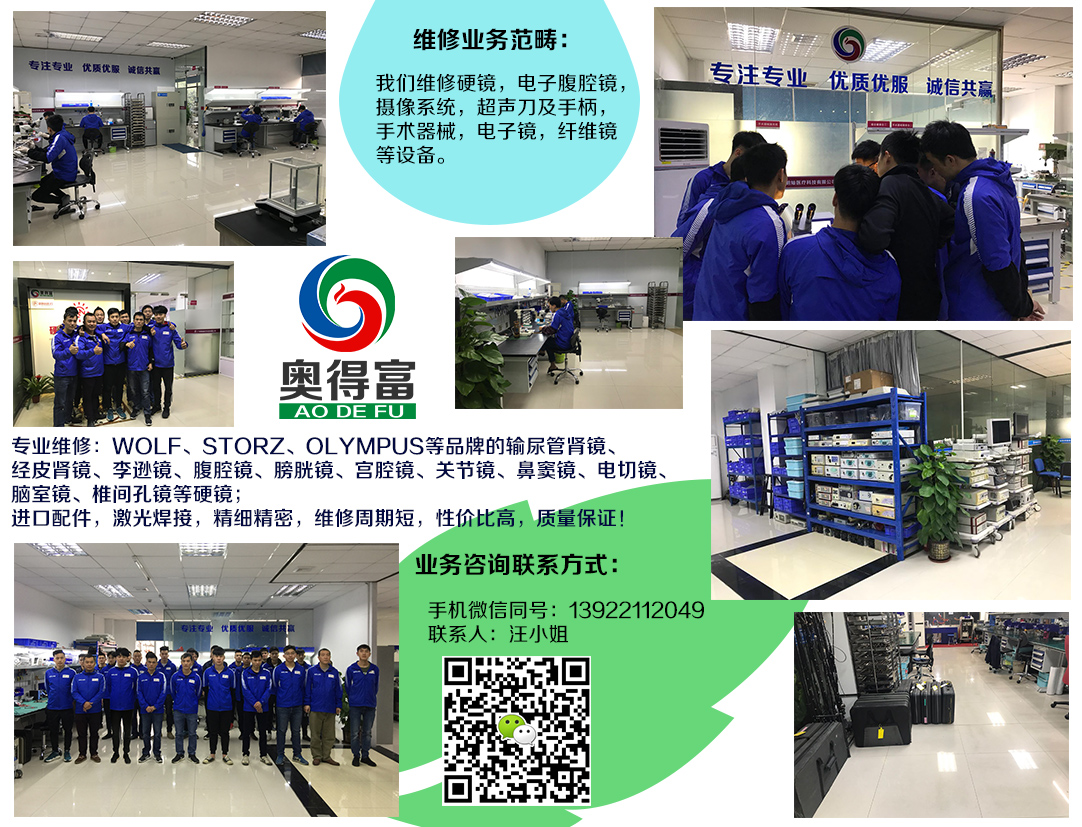 ①专业维修WOLF、STORZ、OLYMPUS等品牌的输尿管肾镜、经皮肾镜、李逊镜、腹腔镜、膀胱镜、宫腔镜、关节镜、鼻窦镜、电切镜、脑室镜、椎间孔镜等硬镜;