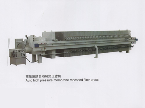 厢式隔膜压滤机和现有的传统厢式压滤机之间的主要区别是在滤板和滤布之间增加了一层弹性膜。在操作过程中,加料完成后,可以在滤板和膜之间注入高压流体介质,整个膜将使滤饼膨胀,以进一步使滤饼脱水。