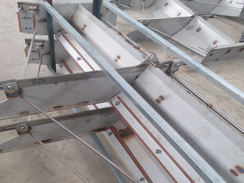 三、刮粪板专科技师设计,刮板自动收放,板位宽度可根据粪沟量身定做,摩擦小、噪音低,清粪干净,整体热镀锌锰钢刮粪板和不锈钢刮粪板,可随意选择。