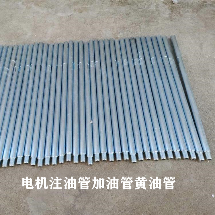 电机注油杆 又名电机注油管以无缝钢管材质为主,也可根据客户要求定做不锈钢、黄铜等材质,电机加油管主要用于电机轴承维护时注黄油所需,电机注油杆 由杆身和黄油嘴两部分组成(可根据客户需求配油嘴防尘帽)。电机加油杆两端扣丝一端为外扣丝用于电机端盖上固定另一端为内扣丝用于固定注油嘴,不同尺寸的油管所配油嘴尺寸也有所不同。