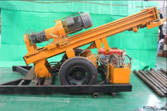 HQZ系列水井钻机是一种轻型、多功能的钻凿孔设备,它主要适用于钻凿水井、农业灌溉井、地热空调孔及其他用途的井孔,尤其适用于山区和岩石地层的取水工程。该钻机可在不同地层上进行穿凿工作,钻孔直径可达219mm。该钻机采用新型液压技术,配套大扭矩液压马达回转以及大缸径液压油缸推进,名厂多缸发动机为液压系统提供动力,两级空滤以及空压机进气设计,延长柴油机的使用寿命。独特的泵组设计方便维修,降低维修成本。集中控制的液压操纵台,方便操作。该系列钻机采用挖掘机履带底盘,越野性能强。独立的模块设计,可使钻机装在卡车上,增加其机动性。两档回转和推进速度可满足在土层和岩层的不同穿凿需要。可根据不同型号的钻杆和冲击器进行调整更换定位盘,卷扬机构方便钻杆和冲击器的吊装,降低劳动强度。