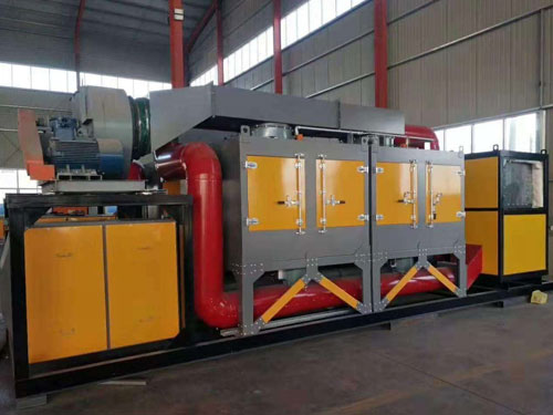 当催化燃烧废气处理设备在运行的时候,其实是可燃物在催化剂作用下燃烧。与直接燃烧相比,催化燃烧温度较低,燃烧比较全部。催化燃烧所用的催化剂为具有大比表面的贵金属和金属氧反应物多组分物质。例如家用负载Pd或稀土化合物的催化燃气灶,可减少尾气中CO含量,提高热速率。负载0.2%pt的氧反应铝催化剂,在500℃下,可将大多数有机化合物燃烧,脱臭净化到化学位移σ=1以下。催化燃烧为无焰燃烧,因此适用于稳定性要求高的场合,如以H2和O2为原料的燃料电池、用汽油或酒精为原料的怀炉(催化剂为浸Pt石棉)等。 催化燃烧工艺流程可分为3种: