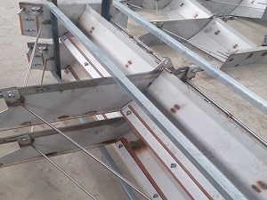 五、转角轮的设计和合理性,有些把麻绳的绳轮也往钢丝绳式的上面用,容易磨绳,故障率高,严格来说,16的麻绳和8个粗的钢丝绳槽轮的槽宽设计很明显是不一样的,胡乱搭配,另外对于一些长度多于60米的粪道建议用钢丝绳式的刮粪机,麻绳式适合40米左右长的粪道。