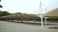 (4) 张拉成型是整个膜结构车棚工程施工的重要环节,施工项目能否取得效果,取决于张拉是否满足设计要求。当支承结构为刚性边界时,预应力的施加要通过特殊的构造来实施。对于柔性边界,可通过调整撑杆的位置来调节预应力的大小。张拉索膜结构中,膜材的张拉预应力是靠索提供的。整个张拉过程实际就是将各种索按照预定的应力张拉到位。张拉时应确定分批张拉的顺序、量值,控制张拉速度,并根据材料的特性确定超张拉量值。张拉过程可以是分批、分级调整索的预应力,逐步张拉达到设计值;也可以对整体实施同步张拉。对有控制要求的张力值应作施工纪录,对无控制要求的也要作张拉行程纪录。