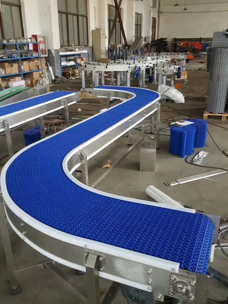 产品:模组式输送网带 名称:模组式单元输送网带 口号:创新革命,领先的现代化输送带。我们有足够的解决方案帮你制造出畅通无阻的机器,为您提供全面的传动及输送解决方案 内容:我们有一种高科技的输送带产品,他也是输送带行业的革命性产品,模组式单元塑料输送网带。任何不可能的使用方式都变成可能。5936平格塑钢输送带一切为了更高效率的生产要求。 功能及优点:A,寿命长,免维护,易清洗,抗腐蚀,耐高温。B,所有以前容易产生问题的输送带都可以解决,免除停工维修带来的经济受到伤害。(问题:经常更换,跑偏,不耐油,不抗腐蚀,不能长期在水中工作,不能长期在冷冻的环境下工作,不精准,) C,加档板,加裙边,加强基带,附加耐磨物体等等都轻而易举得到处理。D,转弯机输送带,放旋转式车输送带,吸真空输送带,提升机输送带。等等方式都非常简单 E特殊性功能:抗菌要求,食品级FDA认证要求,耐高低温要求达到-80度+180度,防静电10三次方到10九次方要求,载重量大(可达到 2000KG )。食品输送机设备PP网带广阔的发展远景为何选用模塑传送带 创造真正价值的解决方案。
