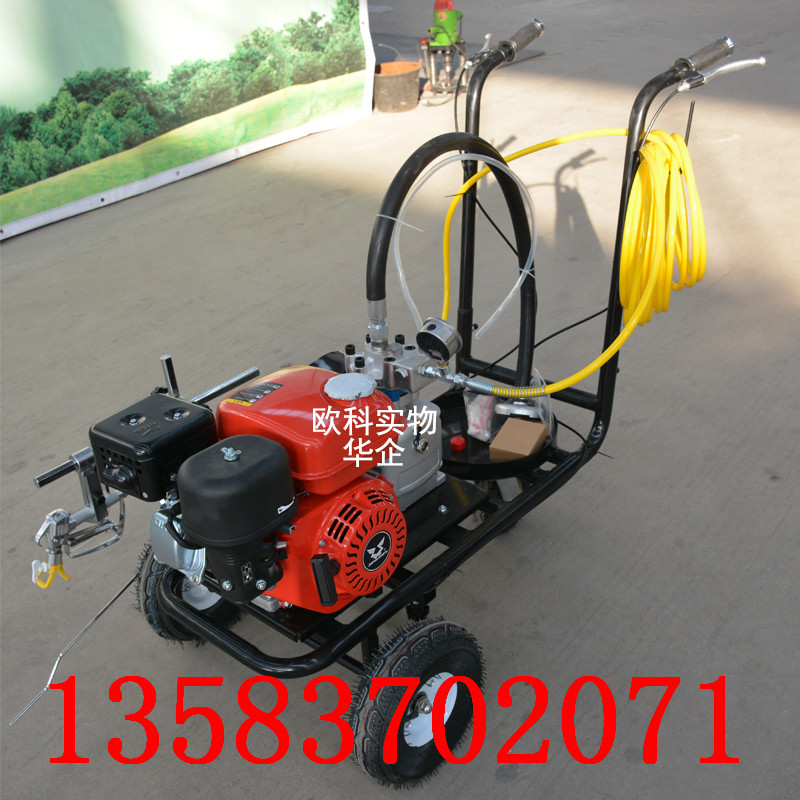 跑道画线机手摇链条带动叶片搅动熔料,简单、轻巧、易操作。2.人行道画线机缸体与液化石油气罐之间加设保温棉隔热板,杜绝安全隐患。3.手推道路划线机画线机工业专用中压炉具,热效高、熔料快。4.四川公路划线机增加活动排烟囱,及时排走废气,保障良好施工环境。5.冷喷道路划线机三层式可拆装上盖板,方便清理釜缸,更换不同颜色熔料汽油马路划线机