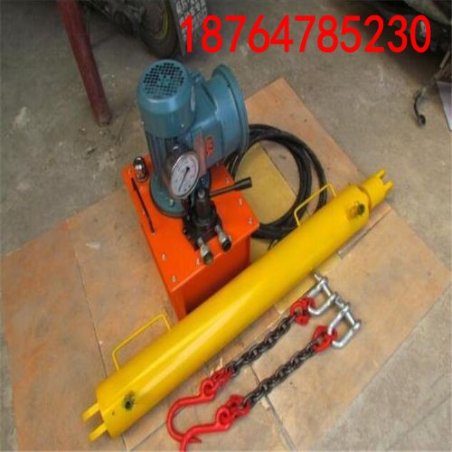 产品配备电动液压泵使用时,先接通电源,再将两根胶管分别插入油缸两端接头内,用U型卡固定,另一端插入电动泵出油接口,用U型卡固定,开启电源开关,然后拨动换向开关控制活塞的进或出,完成紧链工作。