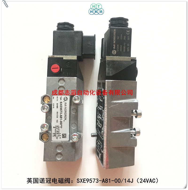 SXE9573-A81-00/14J英国诺冠IMI NORGREN电磁阀技术参数:规格为ISO#1、功能为5/2、驱动方式为电控/弹簧、流量调节阀内置式、端电磁阀线圈型工作压力1.8-10bar、阀体重量0.33kg、配诺冠普通线圈14J(22mm工业线圈、电压为24V交流)