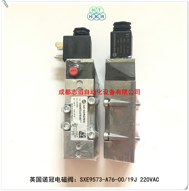 SXE9573-A76-00/19J线圈电压220VAC英国诺冠(IMI norgren)电磁阀技术参数:属于ISO1#阀、流量1230l/min、工作压力1.8-10bar,阀体重量0.33kg、配诺冠普通22mm线圈、电压220VAC!应用行业:水泥生产线设备控制!
