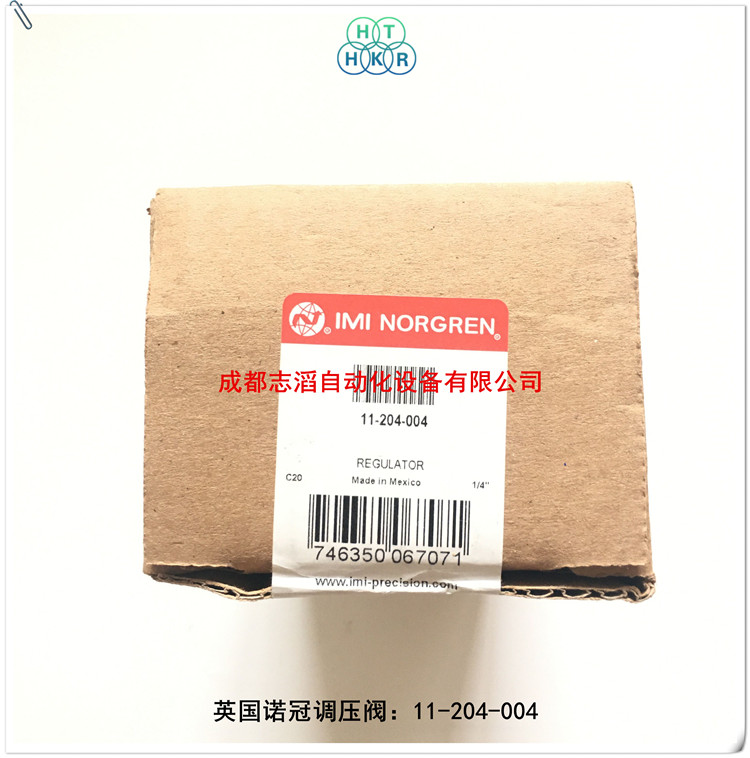 11-204-004英国诺冠(IMI NORGREN)调压阀技术参数:调节压力范围0.16-7bar、接口尺寸G1/4、重量1.1kg、产地为墨西哥、耐压可达20bar、环境及流体温度范围-20到80摄氏度、安装支架18-001-005!