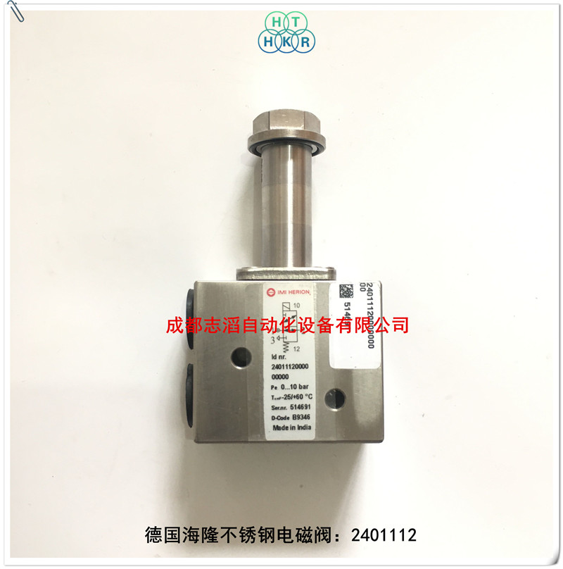 2401112.0000.000.00德国海隆(imi herion)不锈钢电磁阀技术参数:接口NPT1/4、电磁线圈组A+B、产地德国、工作压力(0-10)bar、阀座密封件材质为NBR橡胶、阀体重量0.65!应用行业:石油化工行业阀门控制!