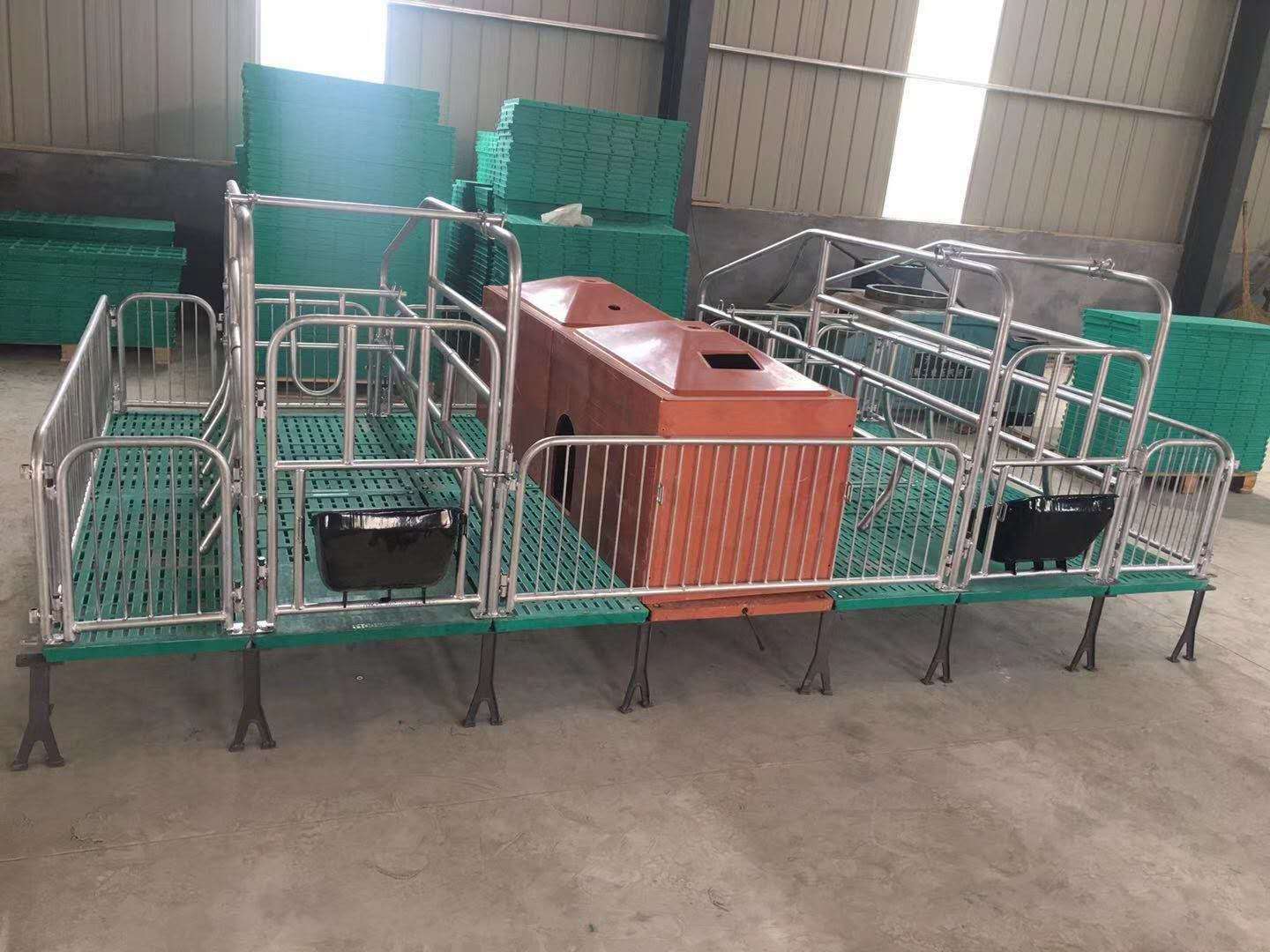 母猪产床有单母猪位产床和双母猪位产床,双母猪位床要比单母猪位的产床更节省空间。按照材料不同分有:冷镀锌母猪产床、热镀锌母猪产床。母猪位复合漏粪板材质和整体复合漏粪板材质产床我公司生产母猪产床 单双体母猪产床 仔猪保育床 定位栏 落地式产床