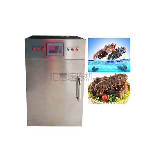 汇富海参速冻机冷冻时间短,8分钟即可实现-196℃,是一种能短时间内冷冻大量产品的速冻设备,有6层、8层、10层等多种型号规格供客户选择,由于冷冻时间短,生成的冰晶很细小,对细胞无破坏作用,不会破坏食材内部结构,可保持食物本身的鲜美,从而保证了产品的真材实料、原色原汁原味和营养价值。并且占地面积小,可以灵活调整产量,操作简单,清洗维护方便,无污染无噪音,经济环保。采用触摸屏+PLC的控制方式,实时监控箱内温度变化,具备手动和自动双操作功能。不锈钢机箱美观耐用,采用高密度聚氨酯发泡保温层隔热。占地面积小,可以灵活调整产量,操作简单,清洗维护方便,无污染无噪音,经济环保。
