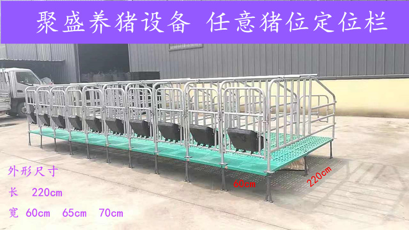 定位栏有前后档门和两侧主架组成。一般一组定位栏为10个母猪位一组。因猪舍面积大小不同,定位栏猪位多少可定做。