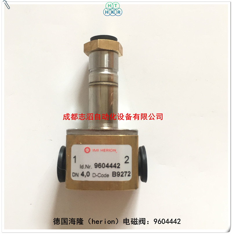 9604442德国海隆(IMI HERION)黄铜直动式电磁阀技术参数简介:属于herion 96000系列、直动式电磁阀、2-5mm通径ND、3/2,NC/NO,双向G1/4,1/4NPT、零压启动、切换时间短、适用于真空状态、内部装有油,无需润滑、适用于带有一体化整流的AC电磁线圈系统(40-60Hz)、电磁线圈的防护等级通过了ATEX和FM,CSA,XP认证!