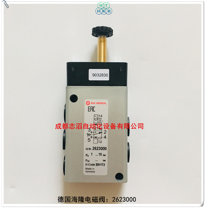 2623000德国海隆IMI HERION电磁阀参数:接口尺寸G1/4、功能为2位5通、电控气复位、通径6mm、工作压力1-10bar、流量为1200L/MIN、阀体重量为0.4kg、产地为德国!