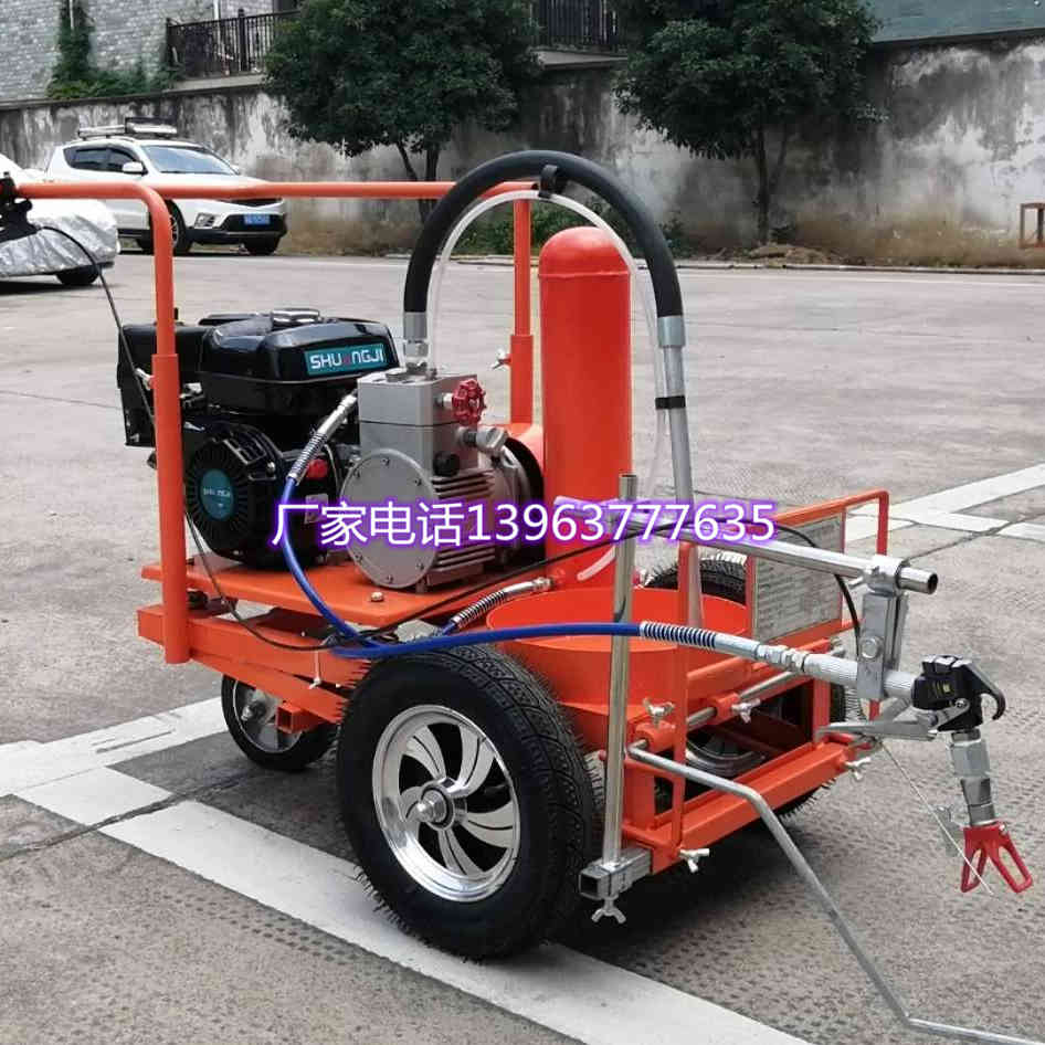 汽油马达大流量马路冷喷划线喷涂机:可用于厂房划线、公路和小区停车位划线、驾校划线、操场划线、斑马线等。处理乳胶漆、道路标线油漆(丙烯酸)等。