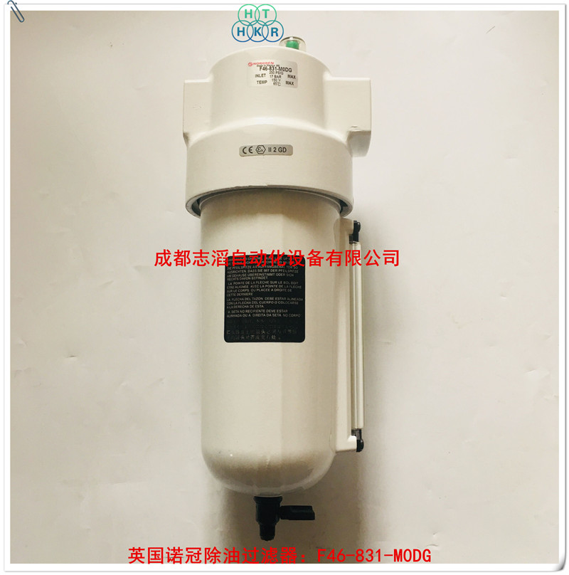 F46-831-M0DG英国诺冠(norgren)除油过滤器(备注除油过滤器主体颜色为白色)技术参数简介:接管口径G1、通径25mm、流量59l/s、重量4.05kg、过滤精度为5um、产地为墨西哥、应用行业轨道交通和船舶发动机气源处理设备!