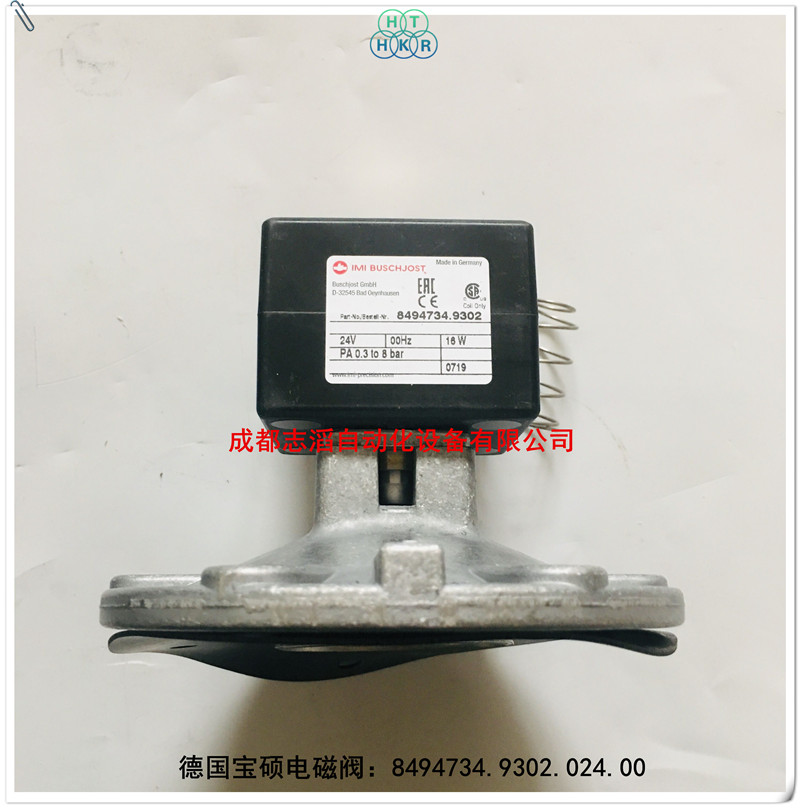 8494734.9302.024.00德国宝硕(IMI BUSCHJOST)电磁阀技术参数简介:阀体型号为8494734、配宝硕普通线圈9302、线圈电压为24V直流、线圈功率为16W、压力范围为0.3-8bar、产地为德国、应用在电厂行业!