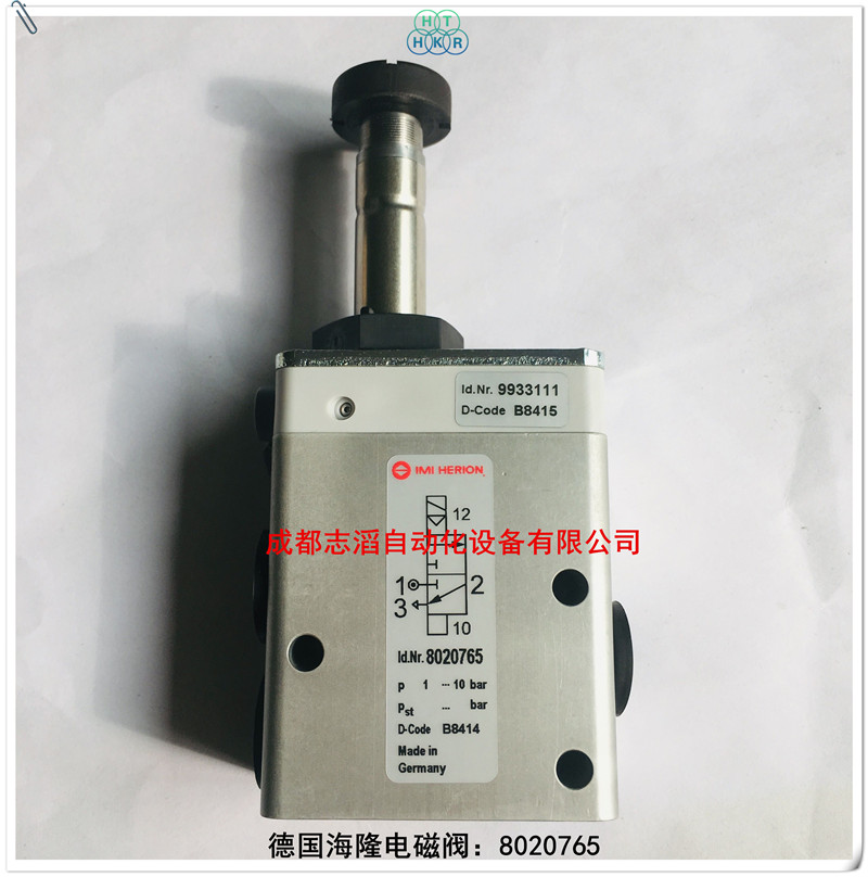 8020765德国海隆IMI HERION电磁阀技术参数简介:接口尺寸G1/4、流量为1200l/min、功能为NC、单电控气弹簧复位、工作压力1-10bar、相应时间为20ms、配海隆普通线圈!产地为德国!