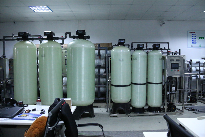 原水→原水加压泵→多介质过滤器→活性炭过滤器→软水器→精密过滤器→阳树脂过滤床→阴树脂过滤床→阴阳树脂混床→微孔过滤器→用水点