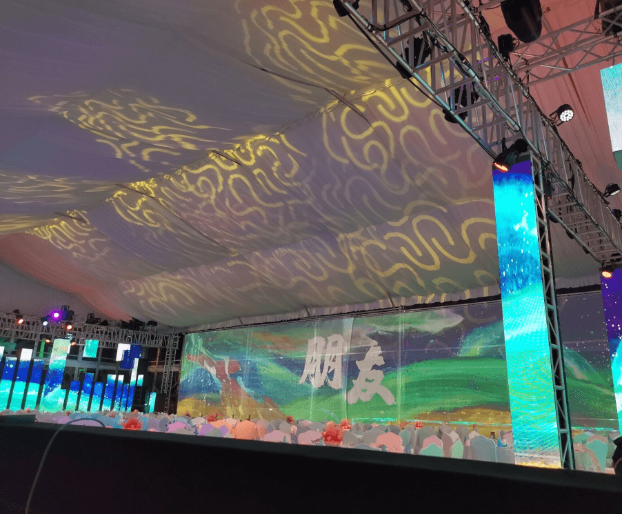 6.纱幕所构成的成像介质能够提供一种良好的成像视觉效果反应,在大型展示中,特别是大型晚会中运用,能够带来震撼的视觉冲击力。