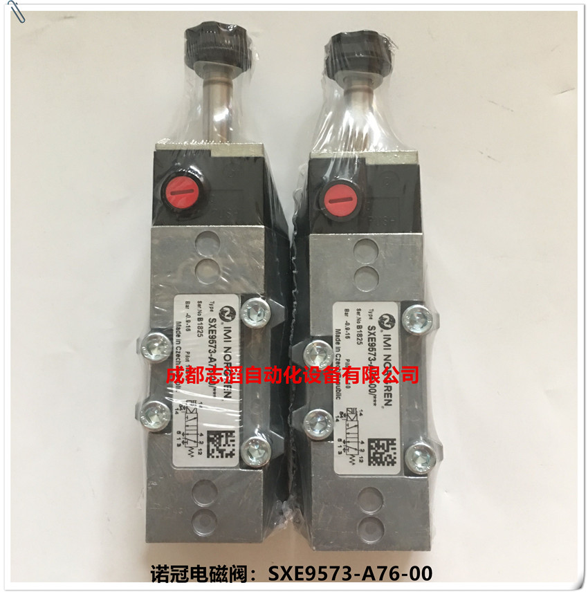 SXE9573-A76-00英国诺冠(IMI norgren)电磁阀技术参数:属于ISO1#阀、流量1230l/min、阀芯为金属阀芯(使用寿命可达1亿次)、瑞士生产、德国组装、工作压力1.8-10bar,阀体重量0.33kg、配诺冠普通22mm线圈、电压24V直流!