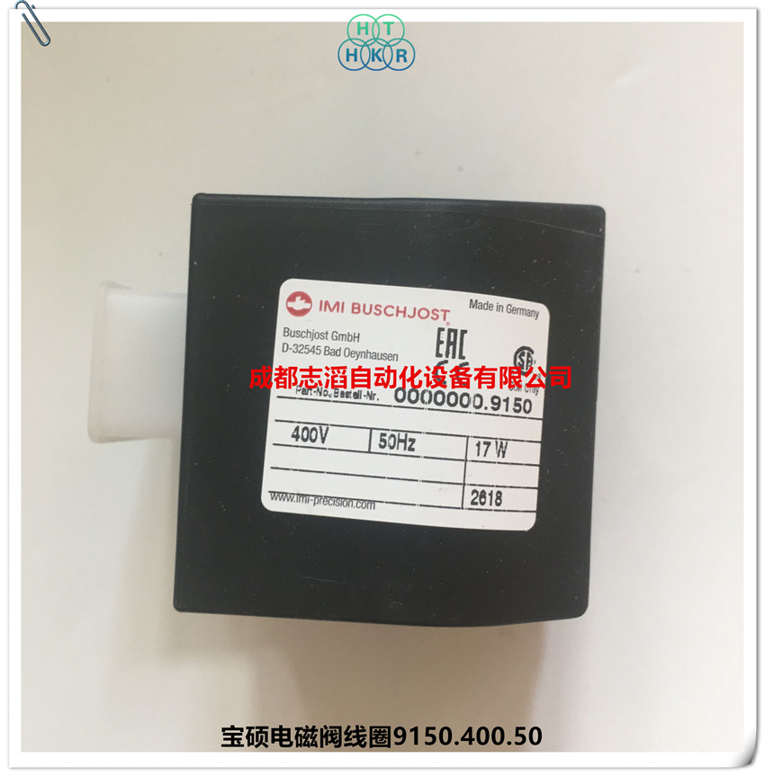 9150.400.50德国宝硕电磁阀线圈IMIBUSCHJOST电磁阀线圈技术参数:线圈电压为400V,50HZ、9150表示不带接线盒、功率为17W、产地为德国