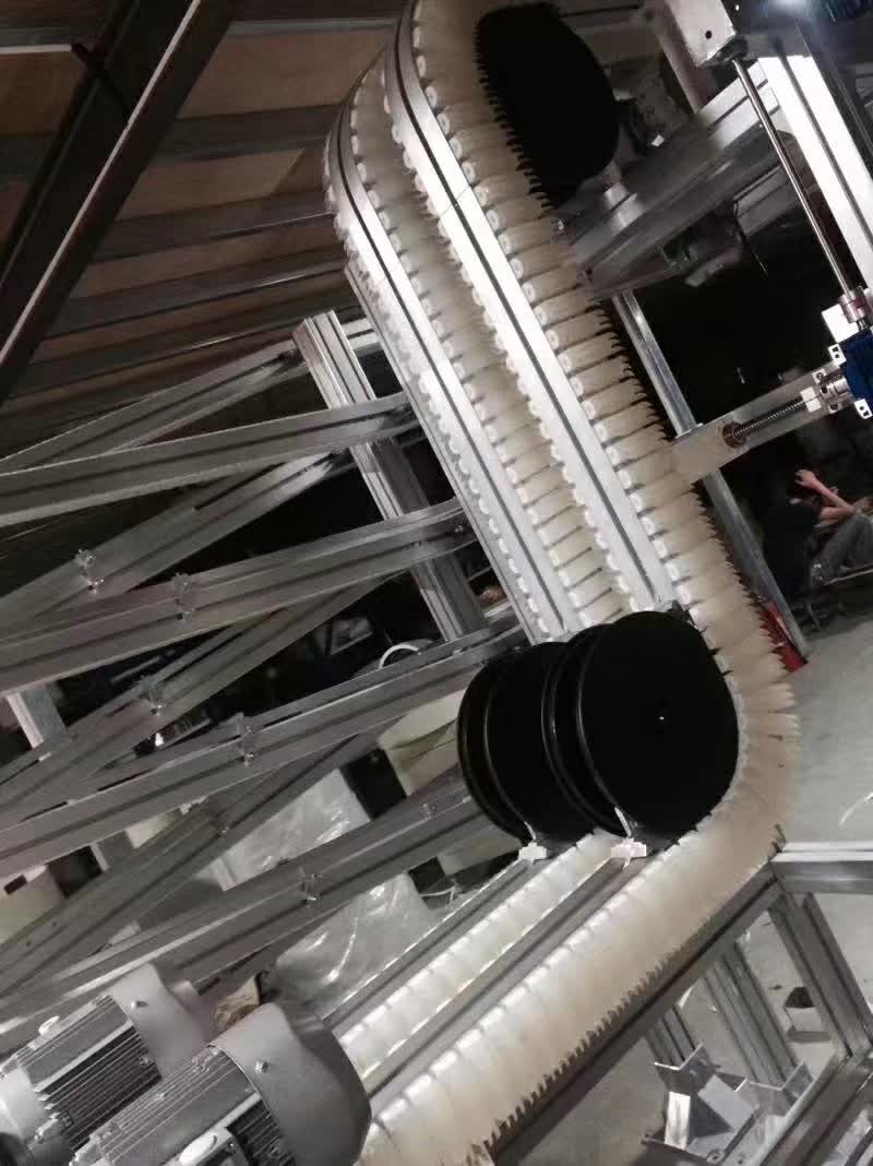 (1)洁净:整线由白色高强度工程塑料链板,柔性链板,齿形链板与表面经阳极氧化的铝合金异型材组装而成。链板为纯白色,设备运行无需润滑,无须定期保养,不会被腐蚀,符合GMP规范。