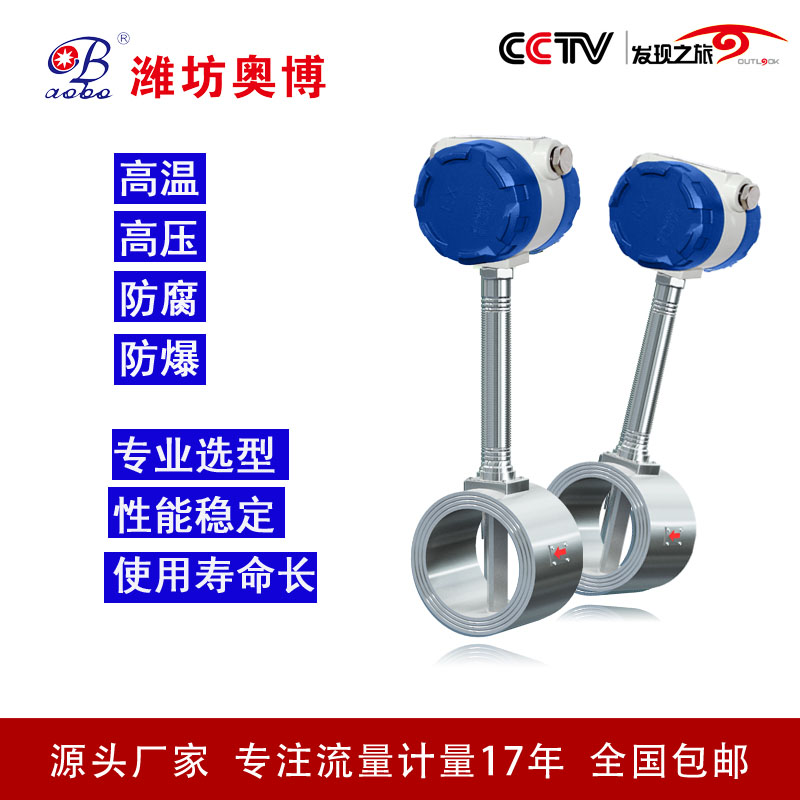 潍坊奥博仪表生产的涡街流量计是根据卡门涡街原理研究生产的测量气体、蒸汽或液体的体积流量的流量计。具有结构简单、性能可靠、使用寿命长等优点。详细描述如下: