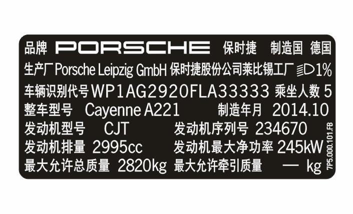 我公司应对进口车、国产车整车需求,采用进口材料,专业设计制作汽车所需的:中文出厂铭牌标签、发动机号码标签、VIN码标签等柔性标签产品。我司的柔性汽车标签产品有黑色哑光、黑色亮面、银色、白色四种颜色材料,标签基材具有耐高温、耐油污、易碎且黏贴牢固的特点,一旦被黏贴在车身不能被完整撕毁,具有良好的防伪特性。保时捷汽车出厂铭牌,保时捷汽车车辆铭牌定制,保时捷汽车中文出厂铭牌,保时捷汽车英文出厂铭牌定制。