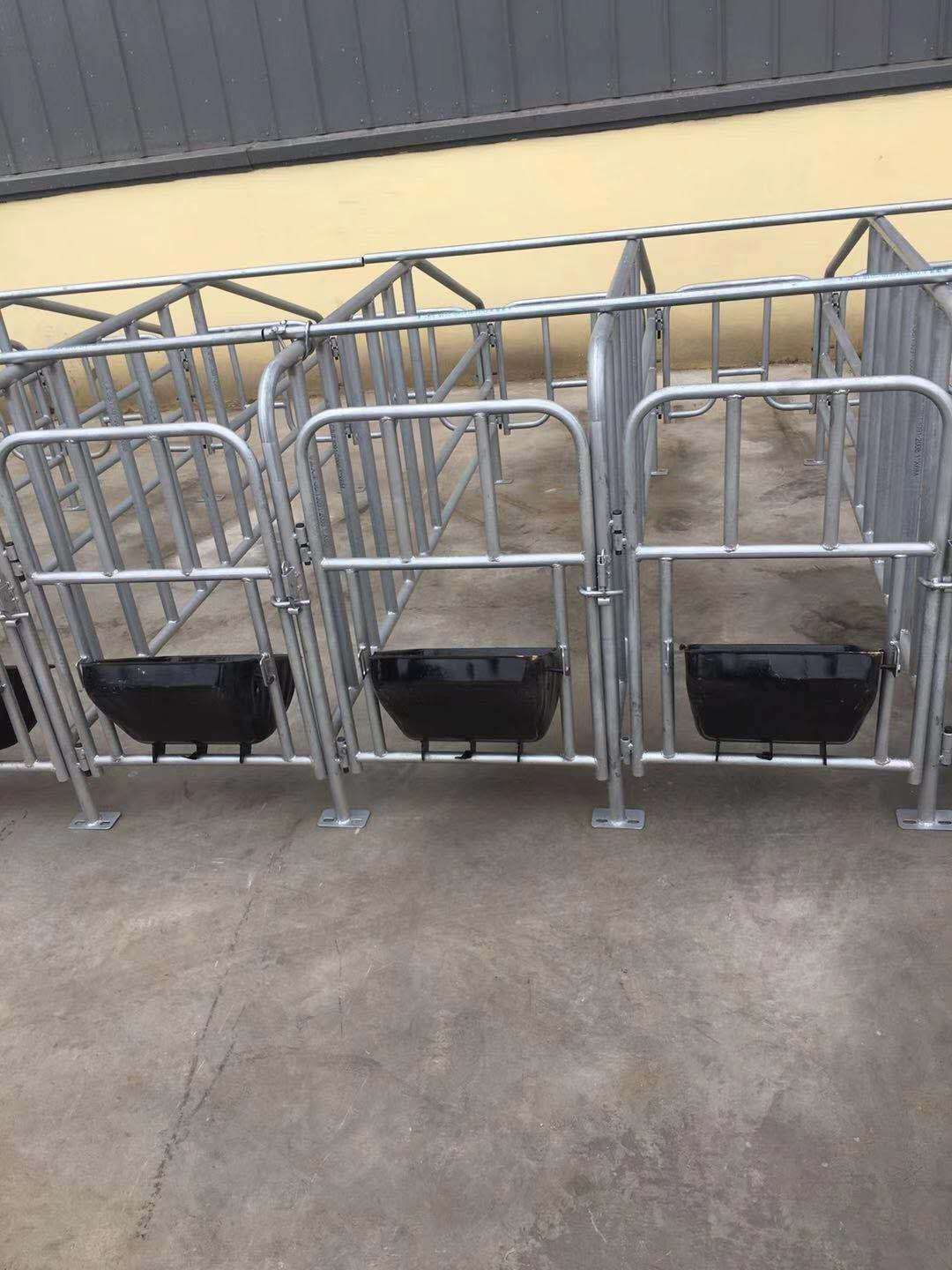 便于饲养管理,便于饲喂及粪便的清理,降低了工人的劳动强度(母猪在怀孕期间,4,5头住在一起,投料的时候一期投,吃料也扎堆,要想详细知道哪头吃够就比困难,而住单间的这些怀没孕母猪这些情况目了然.饲养员可以根据他们的肥瘦合理饲喂,不仅便于管理孕猪还降低了饲养员劳动强度.)。便于统计,母猪生活在定位栏里一目了然,统计挂牌,不容易出错。避免母猪的争斗,减少流产率(如果怀孕后的母猪还住在大栏里,难免会打斗吧,争抢,住在定位栏里避免了打斗,也就降低了流产率。)母猪定位栏结构复合定位栏采用复合板,使保育床更加耐用,增加使用年限。