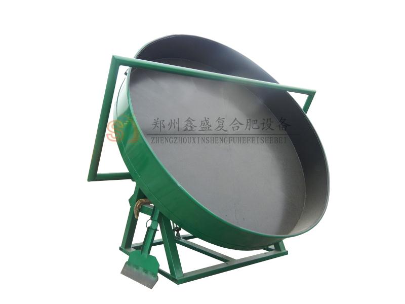 圆盘造粒机:(又叫成球盘)是复合肥生产线、有机肥生产线上的主要设备之一。圆盘造粒机盘角采用整体圆弧结构,成粒率可以达93%以上。圆盘造粒盘设有三个出料口,便于间断生产作业,大大降低了劳动强度,提高了劳动效率。圆盘造粒机减速机与电动机采用柔性皮带传动,起动平稳,减缓冲击力,提高圆盘造粒机设备使用寿命。圆盘造粒机盘底采用多条辐射钢板加强,坚固耐用,永不变形。鑫盛制造的圆盘造粒机加厚、加重、坚固的底座设计,不需地脚螺栓固定,运转平稳。圆盘造粒机主齿轮采用高频淬火,使用寿命增加1倍。圆盘造粒机造粒面盘内衬高强度玻璃钢,防腐耐用。具有造粒均匀、成粒率高、运转平稳、设备坚固耐用、使用寿命长等优点,是广大用户选择的理想设备。