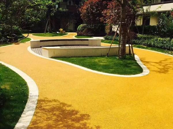 彩色透水混凝土材料组成:交地透水混凝土胶结料,水泥 ,石子,水,色粉,透水混凝土保护剂