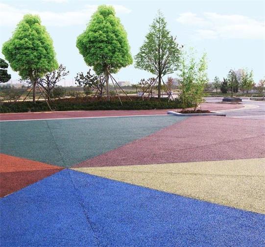 将定量石子,水泥,增硬剂,水投入搅拌后搅拌均匀,由斗车拉送至施工现场,铺装前路基应保持湿润,垫层需要振捣平整,面层需要用水泥抹平机收光抹平,施工完毕后需要用农膜进行覆盖养生,两天后进行洒水养护,养护期间应设隔离带,避免行人通过。养护五到七天,面层干燥后喷涂面层封闭剂。