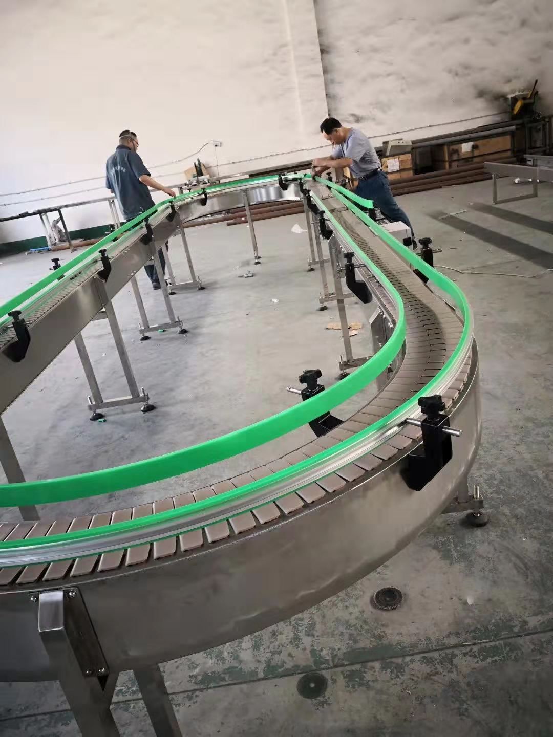 880TAB转弯链:标准半径的转弯链和小半径转弯链,880标准尖角转弯链,880M磁性转弯链。板宽82.6mm,101.6mm,114.3Mm,152.4mm节距38.1mm。以上各种有配套链轮:主动轮,被动轮,机加工和注塑链轮。