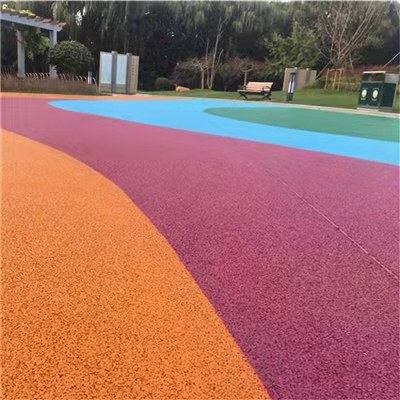 彩色土称排水混凝土和生态透水混凝土,透水地坪,是由小石子、42.5水泥、掺和透水外加剂、水、彩色强化剂以及稳定剂等经一定比例调配拌制而成的一种多孔轻质的新型环保地面铺装材料。透水混凝土是用粗骨料表面包裹着一层薄浆料相互粘结成蜂窝状,能让雨水流入地下,有效补充地下水;并能有效的消除地面上的油类化合物等对环境污染的危害;且色彩缤纷,景观融合,使城市环境建设更加和谐是保护自然、维护生态平衡、能缓解城市热岛效应的优良的透水地坪材料。在城市雨水管理与水污染防治等工作上, 有意义,有利于人类生存环境的良性发展。