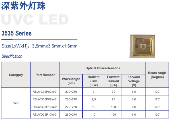 隆兴达供优质3535杀菌UVCLED灯珠