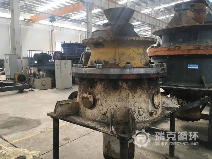 这台设备是我公司在山西某地回收的,由于该企业经营问题,将生产设备转让,与我公司联系之后,我公司派技术人员到现场对该GP100进行了详细的检查,除了外观有锈迹以外没有其它磕碰。设备运回公司之后,在我公司车间将设备整体拆开并对设备进行详细的检查,发现轴承、动锥等均完好,然后根据设备的实际情况制定了维修、保养方案,仔细的完成了每一道维修、保养流程,并且进行了数个小时的试机,设备在试机中运行的非常平稳,确保了设备的性能都符合要求。