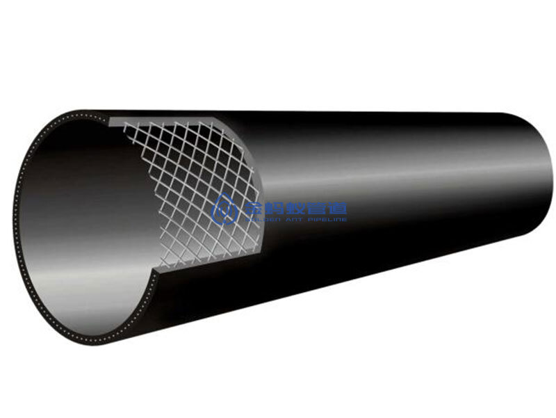 以包覆处理后的高强度钢丝连接缠绕成型的芯层为增强骨架,采用热熔胶、双抗料通过挤出成型方法复合成一体的管材。