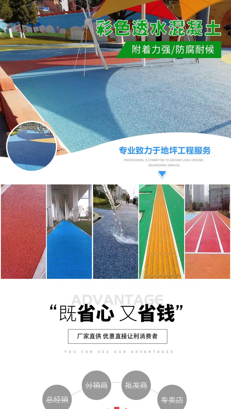 3、颜色任选可以自由组合成各种形状团,鲜艳明亮。彩色透水混凝土有色彩优化配比方案,可以配合设计师创造性,实现不同环境和个性要求的装饰风格。