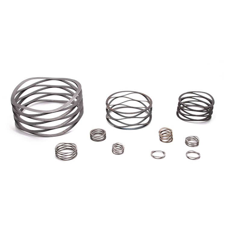 波形弹簧简称波簧,是金属薄圆环上具有若干峰谷的弹性元件。通常应用于载荷和变形量均不大,要求弹簧刚度较小需施加轴向预压力的场合。波形弹簧特别适用于需要减重的应用和受较小安装空间制约的应用,其典型使用领域包括:液压密封和电机等。