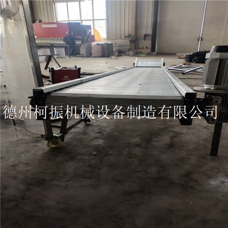 2.链板输送机主要用于输送磨损强,温度高的物料,用户订货时需注明型号,两轮中心距,倾斜角度,输送量等工艺参数。链板输送机动力装置在链板机头部、左、右装可根据用户要求变动。链板式输送机输送速度以810m/min为宜,太低影响输送量,太高噪音大,磨损增大。