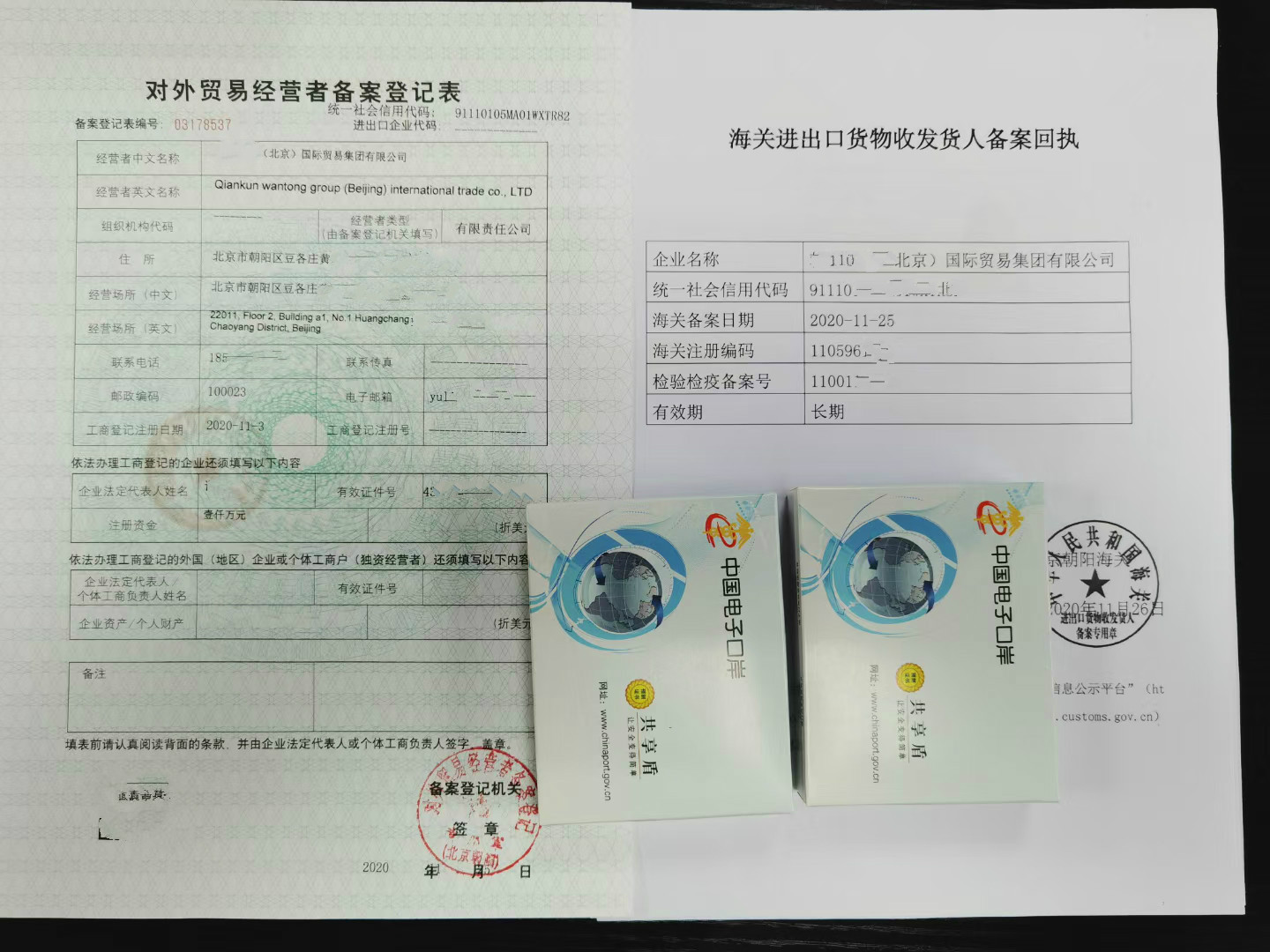 1、《对外贸易经营者备案登记表》已通过商务部业务统一业务备案平台;对外贸易经营者备案登记系统完成相关公司主体信息录入,包括企业名称英文翻译,注册登记地址英文翻译;