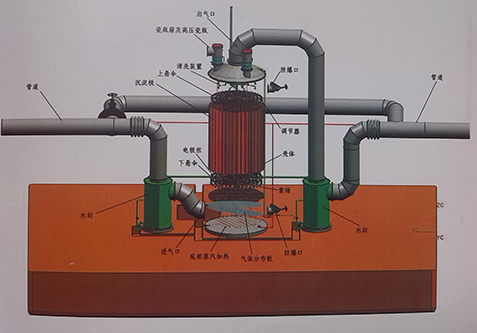 按电场理论, 正离子吸附于带负电的电晕极,负离子吸附于带正电的沉淀极;所有被电离的正负离子均充满电晕极与沉淀极之间的整个空间。当含焦油雾滴等杂质的煤气通过该电场时,吸附了负离子和电子的杂质在电场库伦力的作用下,移动到沉淀极后释放出所带电荷,并吸附于沉淀极上,从而达到净化气体的目的,通常称为荷电现象。当吸附于沉淀极上的杂质量增加到大于其附着力时,会自动向下流趟,从电捕焦油器底部排出,净气体则从电捕焦油器上部离开并进入下道工序 。