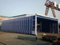 伸缩移动式喷漆房是我公司的主导产品,它适用于各种大中型设备及零部件的打磨,喷漆及烘干作业。展开前室,形成一个封闭或半封闭空间,在伸缩移动式喷漆房中进行喷漆或打磨作业,收缩前室后形成一个敞开式空间,方便进行工件转运及翻转工作,降低了工人劳动强度和工作效率。喷漆房整体为框架式结构,表面喷塑,框架之间由阻燃PVC布链接密封,颜色内白外兰,外形美观大方,安装快捷方便,价格低廉,运行平稳安全可靠。前室可伸展3-60米不等,宽度可做成2-25米不等,它净化效率高漆雾处理和打磨粉尘处理,提高工人喷漆工作环境质量,深受广大客户好评和亲睐,价格1.5万至18万元左右,